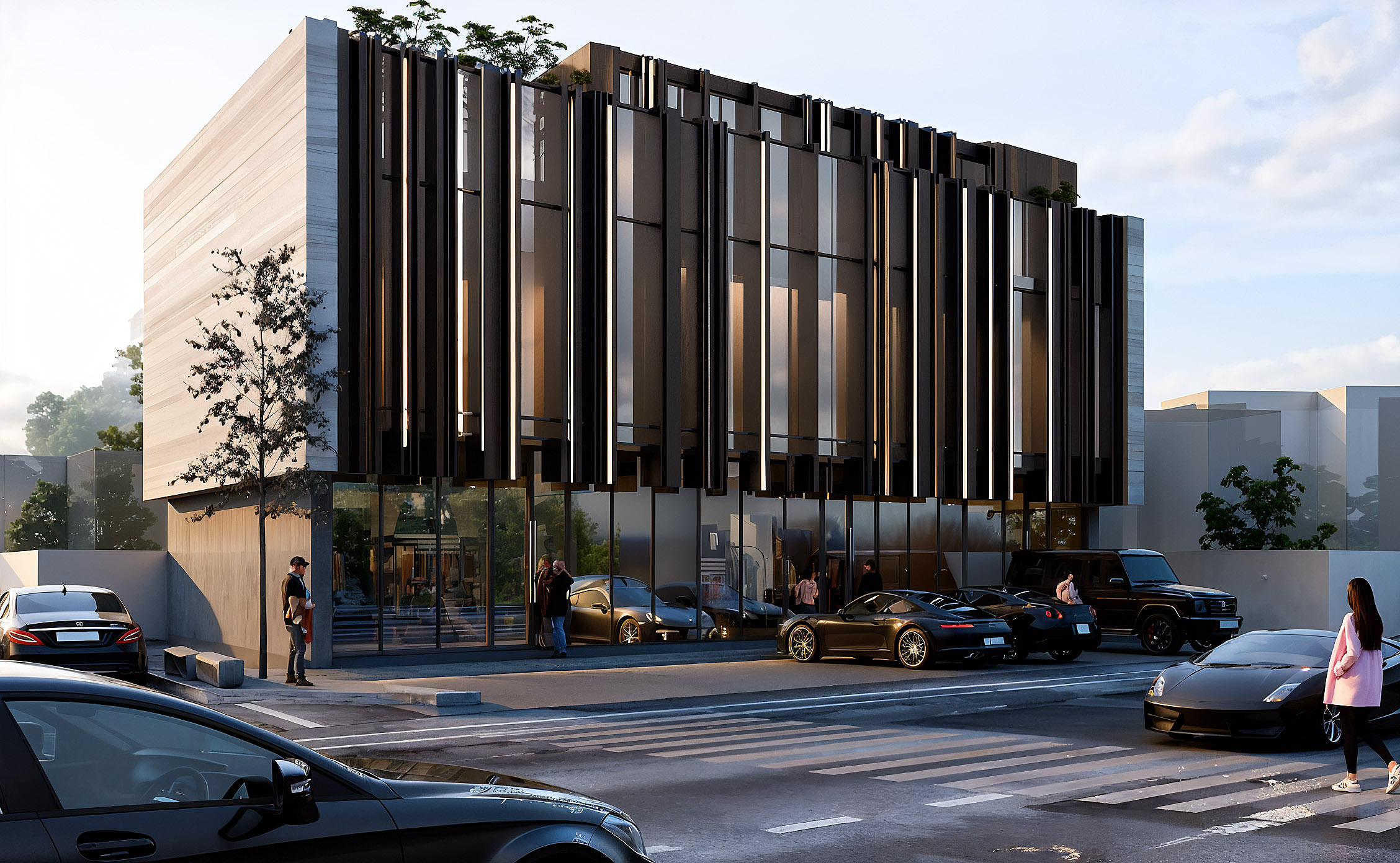 The Al-Eifan Office Building was designed in a contemporary architectural style that combines simplicity with visual distinction through a dynamic façade defined by vertical lines and contrasting materials.