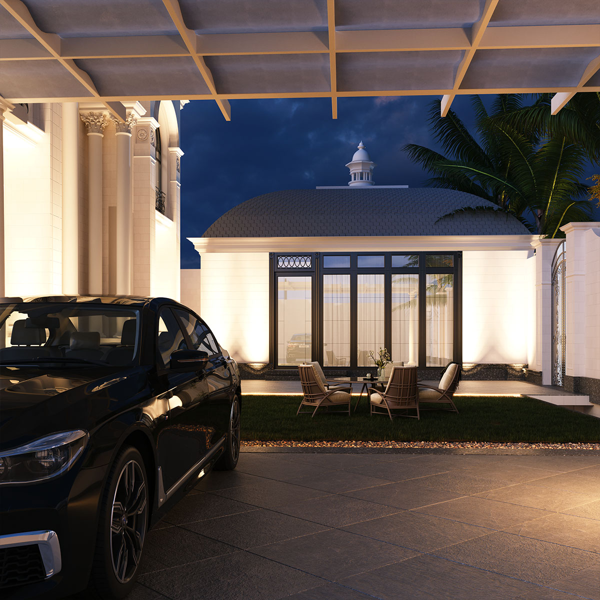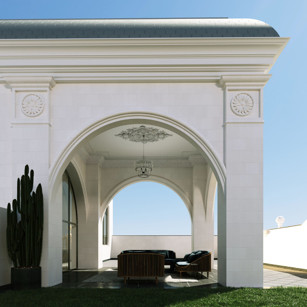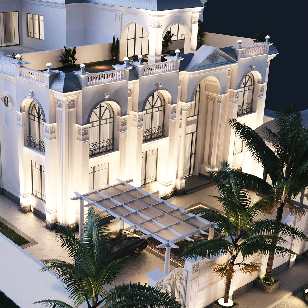 تم تصميم هذا القصر السكني بطابع كلاسيكي راقٍ يجمع بين الفخامة والوظيفة العملية.