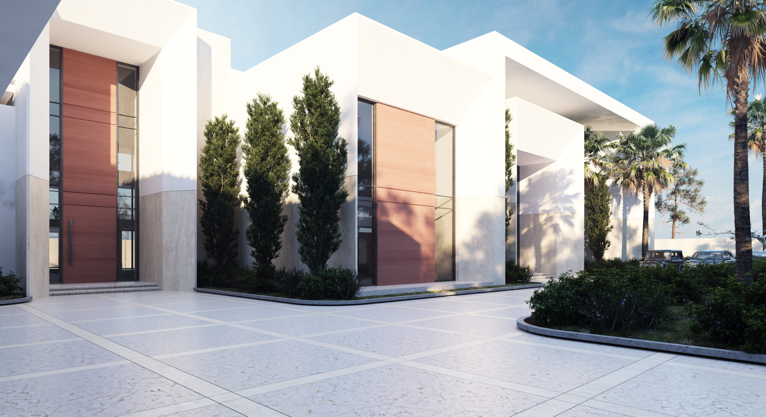 تم تصميم المداخل والأفنية بعناية لتوفير تجربة دخول فاخرة ومتسلسلة تعكس روح القصر ورقي تفاصيله.