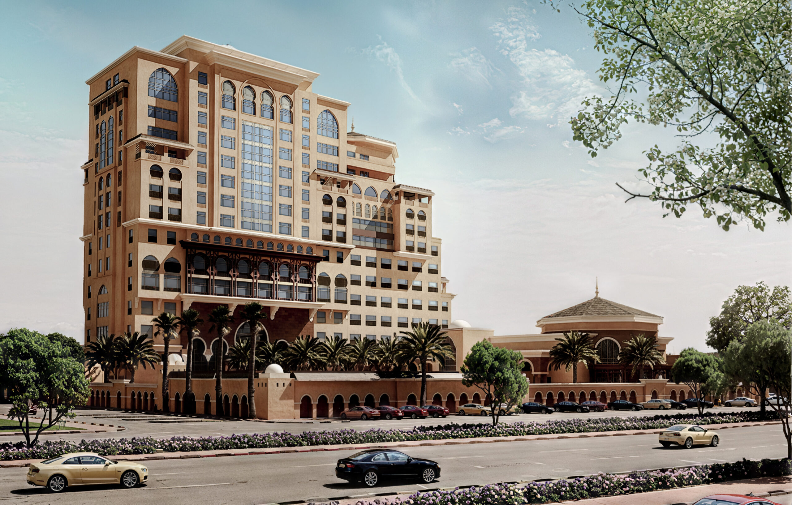 يمثل المشروع برجاً فندقياً فاخراً في حي الخليج بمدينة الرياض، يجمع بين الأصالة المعمارية والطابع العصري ليكون معلماً عمرانياً بارزاً في المنطقة. يتميز المبنى بتصميمه المهيب المستلهم من العمارة العربية الكلاسيكية، مع واجهات أنيقة تتخللها الأقواس والنوافذ الكبيرة، مما يمنحه هوية معمارية مميزة تجمع بين الفخامة والتراث.
