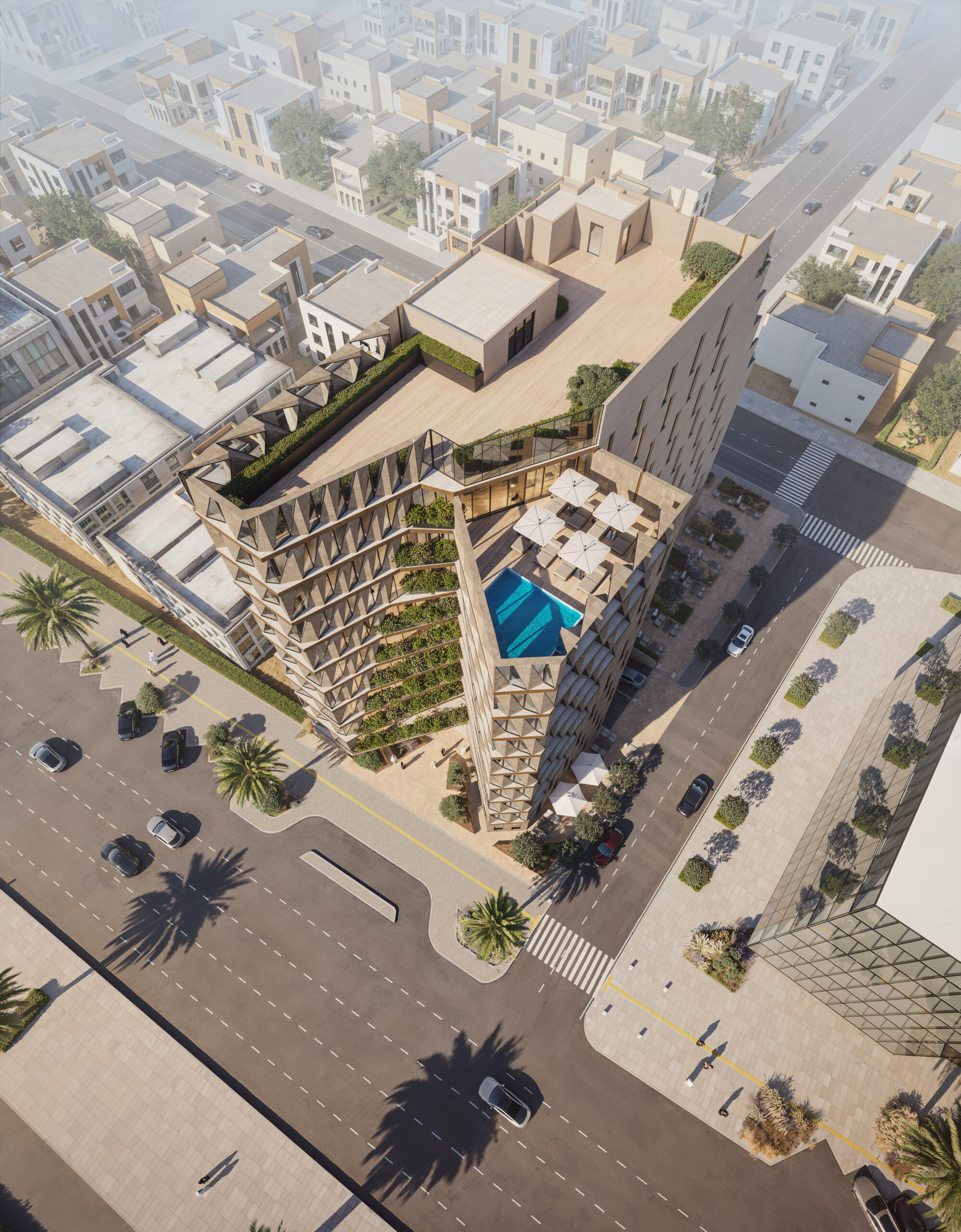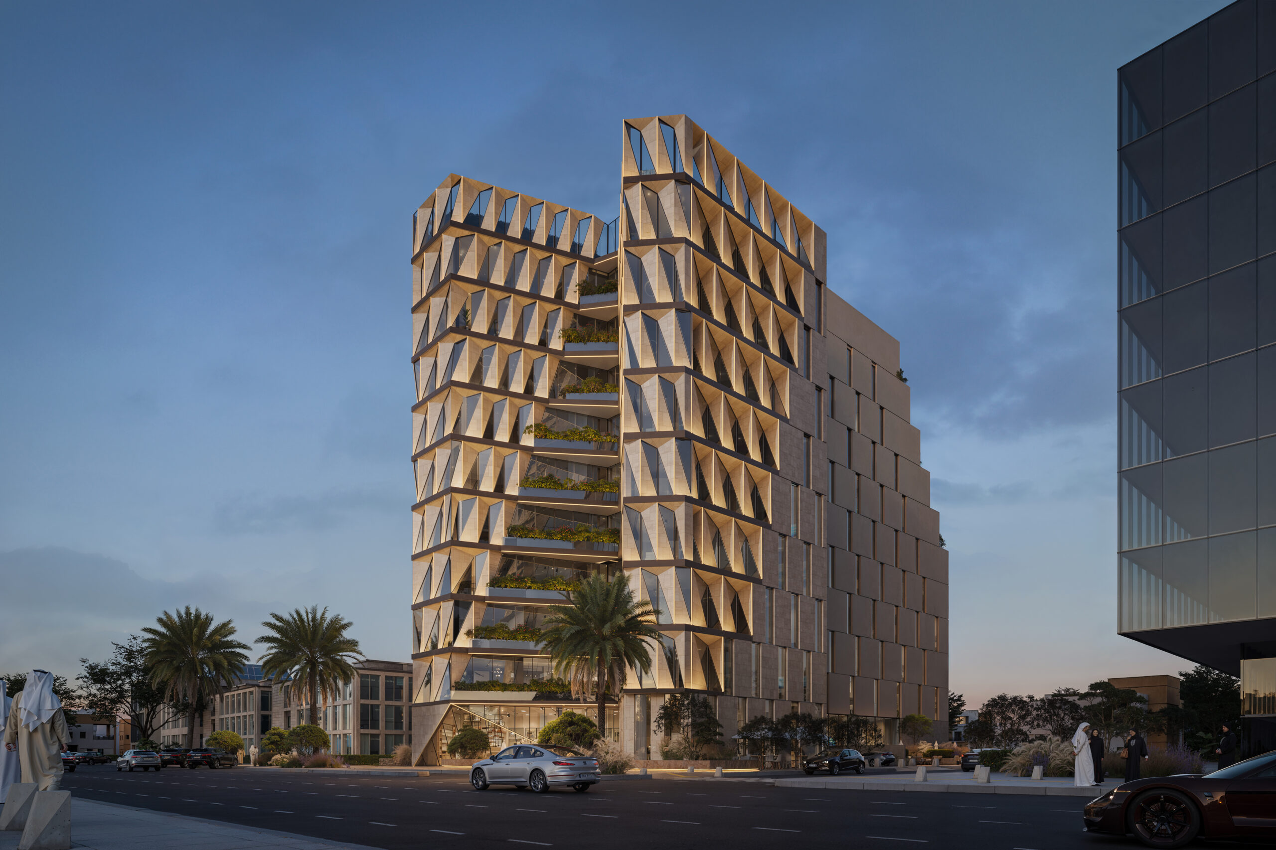يمثل مشروع فندق سما التخصصي أحد أبرز الوجهات الفندقية الحديثة في مدينة الرياض، صُمم ليجمع بين الفخامة المعمارية والوظائف العملية لخدمة الضيافة الراقية. يتميز المبنى بواجهة هندسية مبتكرة ذات إيقاع عمودي بارز يعكس صورة معاصرة ويمنح الفندق هوية معمارية فريدة، مع استخدام عناصر تظليل متدرجة تسمح بدخول الضوء الطبيعي وتقلل من الحرارة، مما يعزز الاستدامة ويحقق كفاءة في استهلاك الطاقة.